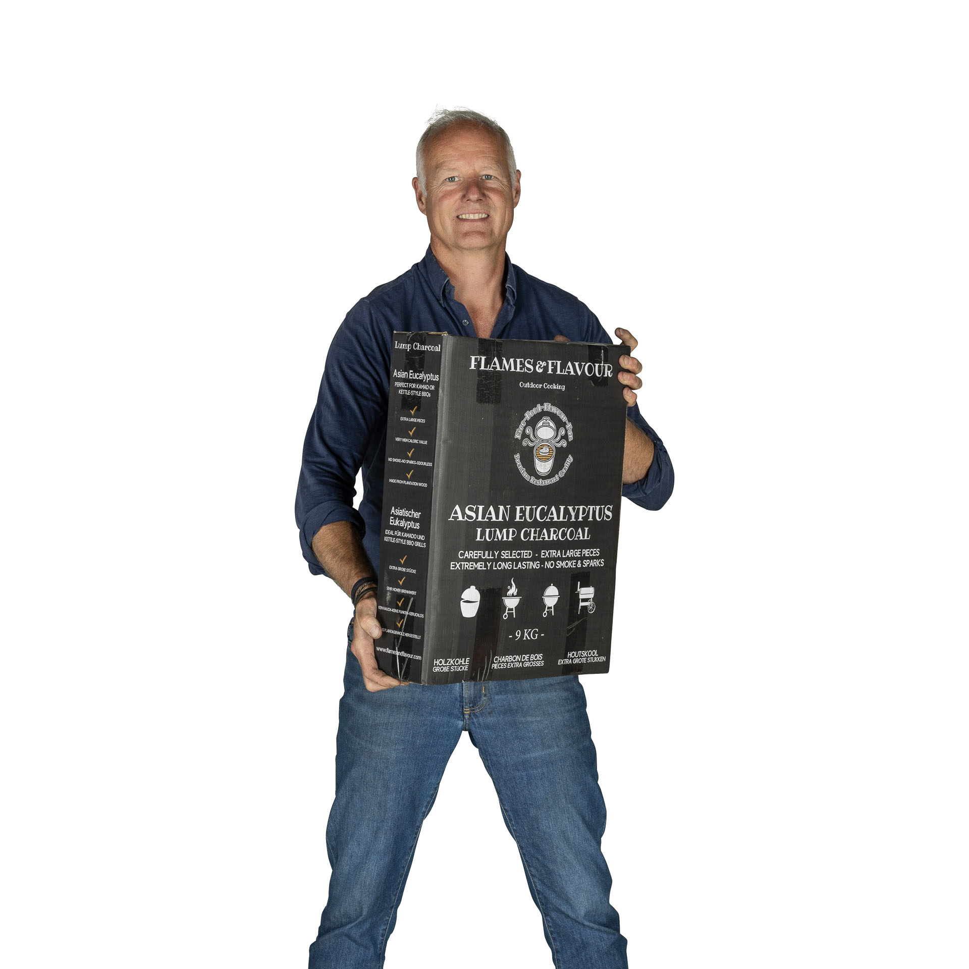 Flames & Flavour Premium Restaurant Houtskool zit verpakt in een handige stevige doos. Hierdoor blijft de houtskool heel tijdens vervoer. Geeft ook gemak in opslag en bij het vullen van de BBQ